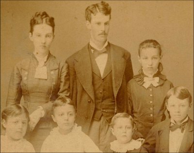 ![]() Click on the photo to view larger version. These are the surviving children of John G. Sharp and Mary Martha Kramer (known as Martha). Taken August 1877. They were orphaned when their mother died the year before and their father had passed away two years before her. The children were separated upon their mother's death and one of the girls is not in the picture but the back is marked as "July 1876 we all separated. Aug 1877 we all meet in this." Eight children were listed in court documents but there are only seven in the picture. The children are (back row) Estella born 4 Apr 1860, Richard born 9 Dec 1957, Ella born 1861 OR Martha J born 30 Sep 1862 (known as Mattie). (front row) twins Isabella and Corabella born 18 Aug 1869 (not sure who is who), Charles P. born 1 Sep 1872, and my great grandfather Albert K born 17 Aug 1866. They had another son Charles born 23 Jan 1871 died 27 Feb 1871. All were born in Groveport, OH. John was born in England and Mary Martha was born in Germany. They married in Franklin County Ohio and are buried in Groveport, OH. If anyone would like more information please contact me at sharplongancestors@yahoo.com. Andrea Sharp Long |